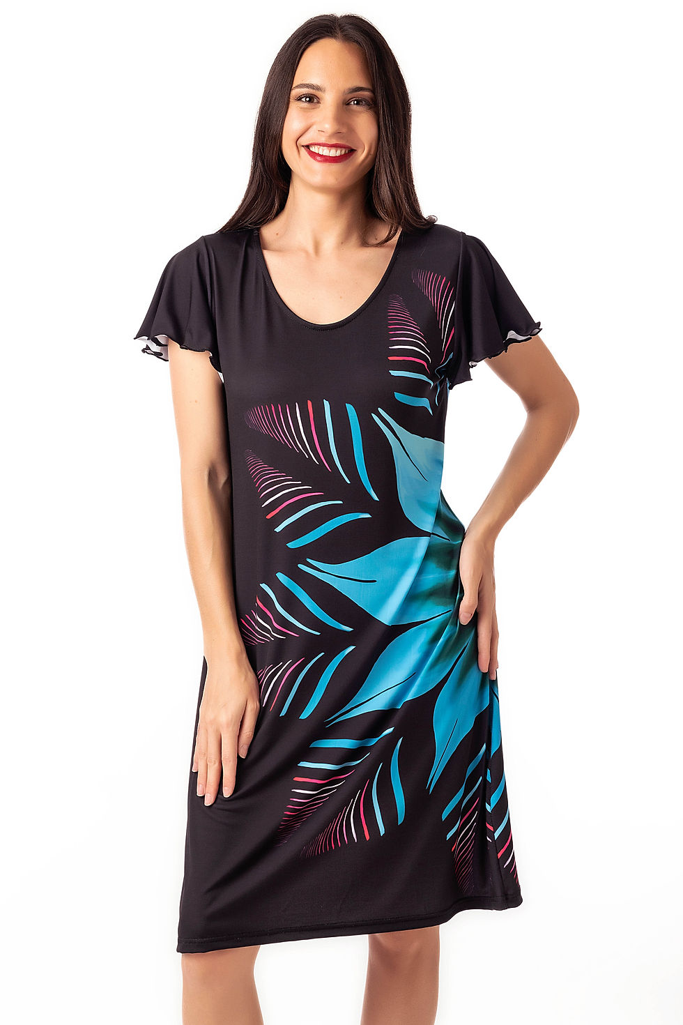 Vestido estampado manga corta con escote redondo- Masquenada